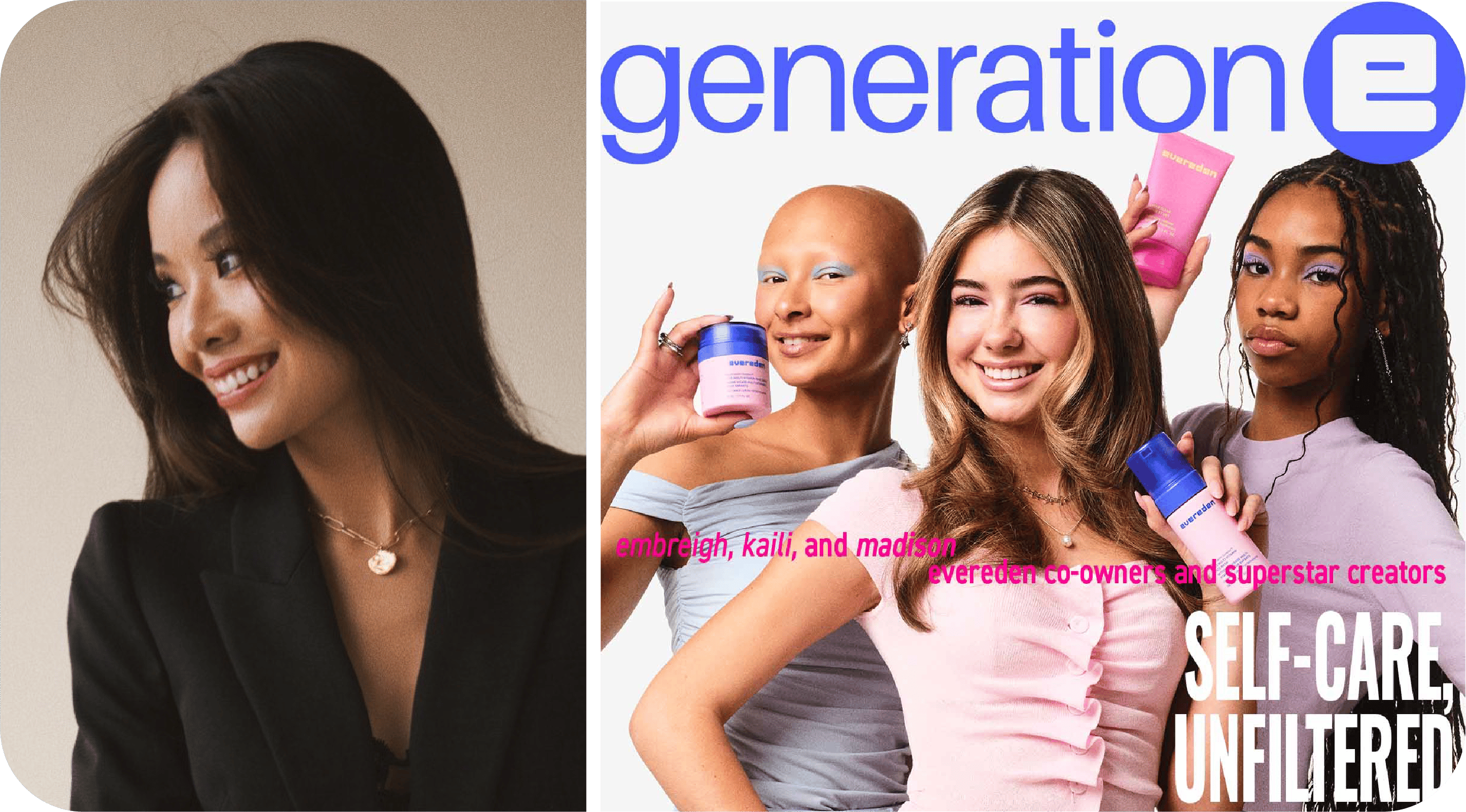 Kimberly Ho, CEO of skincare brand Evereden, shared that she gave equity in the company to three Gen Alpha creators—Madison Rae (14), Embreigh Courtlyn (15), and Kaili Asa (17)—as part of the company’s Generation E campaign.