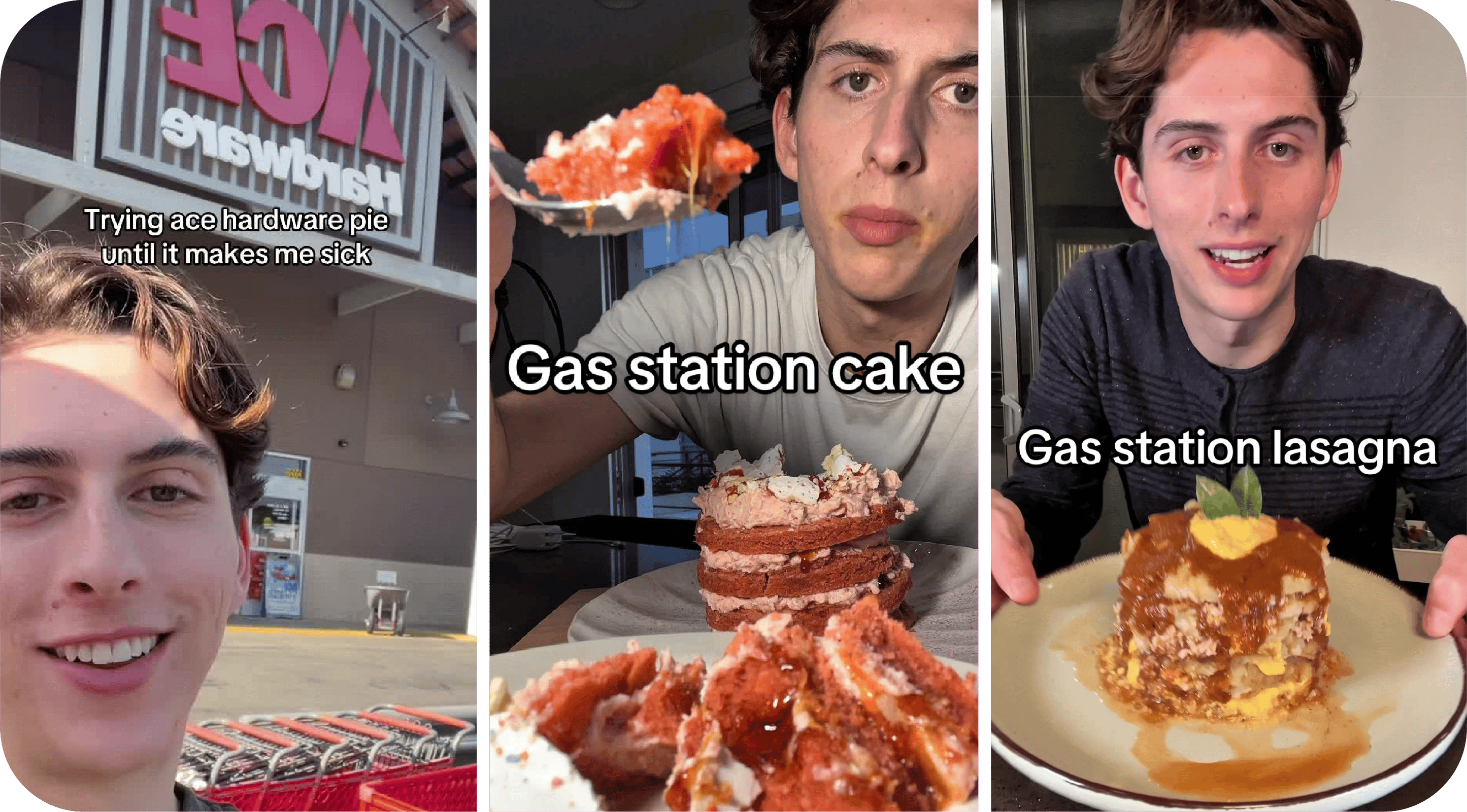 UCLA senior Brad Bradie is going viral on TikTok for eight-minute videos where he pulls a “reverse Nara Smith”—making food out of ingredients from gas stations and sampling the pies from Ace Hardware.