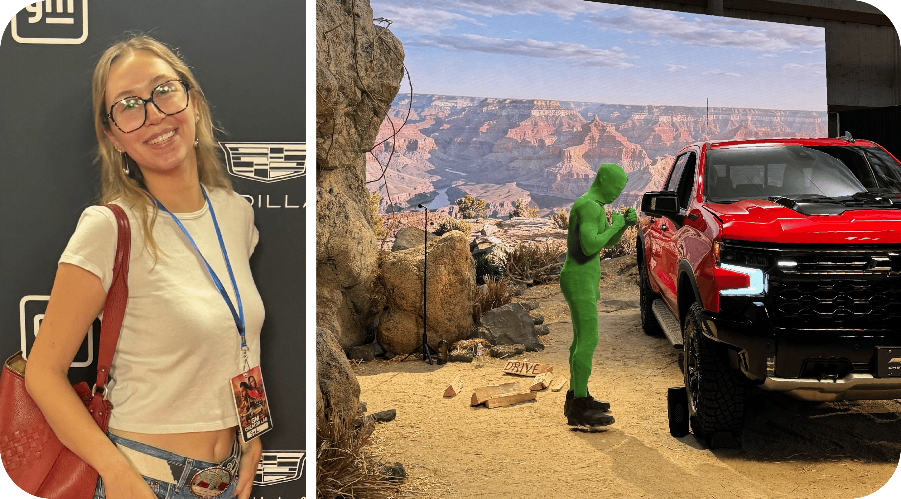 Creators like Steven Spence and Micajah Stude were given access to five sets, each showcasing GM vehicles in a different setting (like a Chevy at a campsite or a Cadillac on a red carpet).