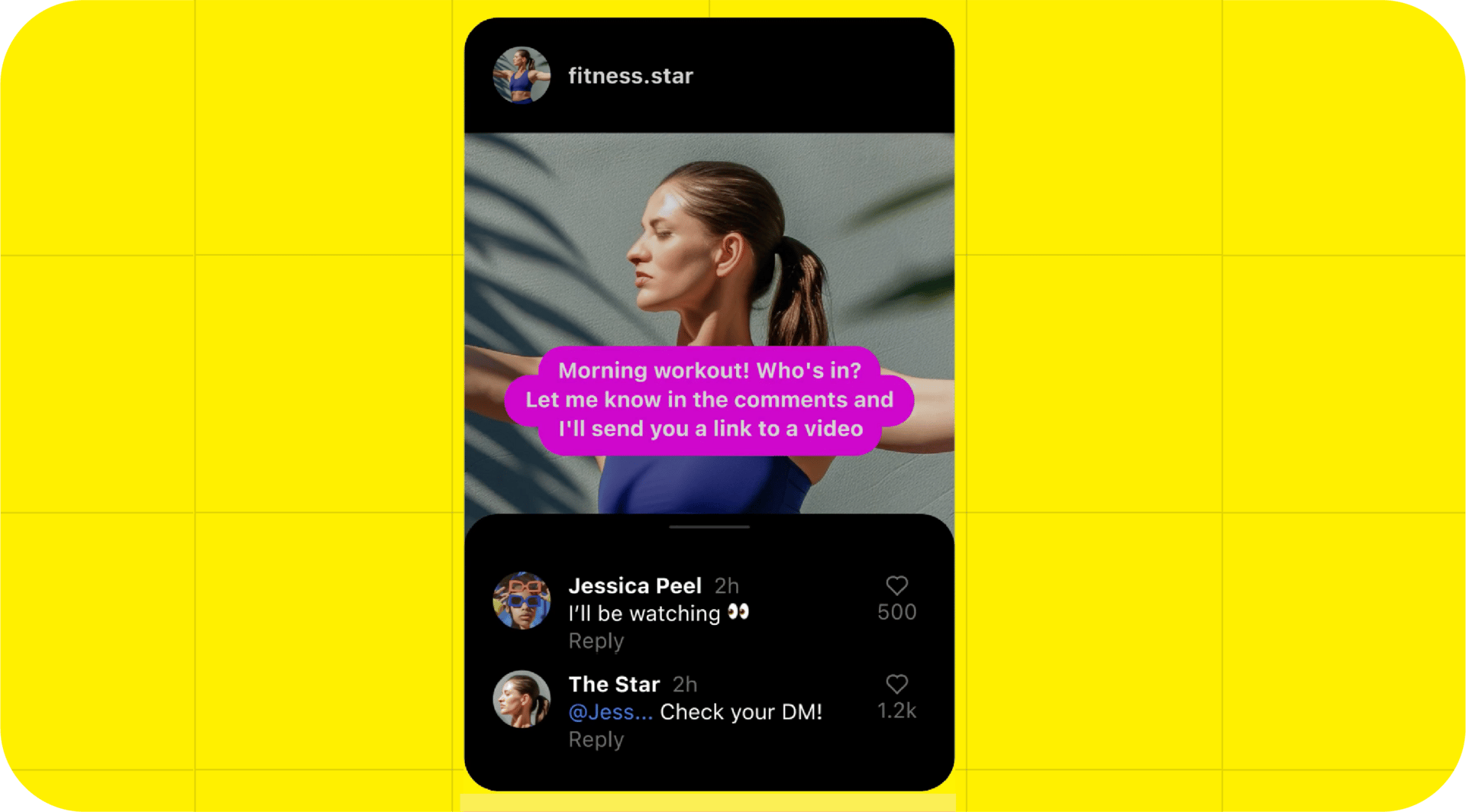 How Manychat works: Creators direct followers to comment a certain word on their posts, then those followers get an automated DM with a link or download.Β