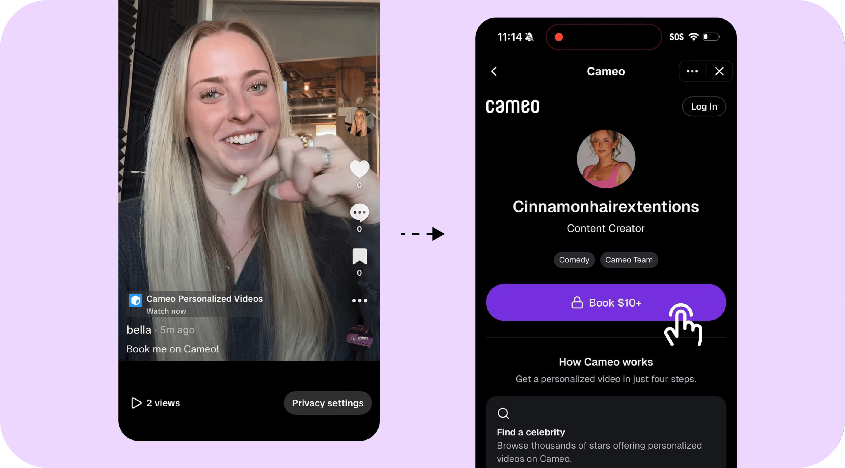 With the integration, TikTok is giving creators custom call-to-action buttons they can add to their videos for personalized messages. Users can also search βCameoβ on TikTok to see its full roster of creators that offer the service.